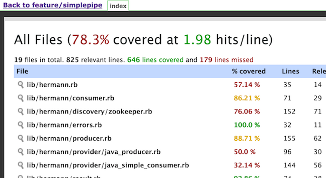 I’ve found a Ruby project, hermann, I’d like to build using Jenkins Pipeline. I’d also like to have the code coverage results published with each build job. I could write a plugin to publish this data, but I’m in a bit of hurry and the build already creates an HTML report file using SimpleCov when the unit tests run.