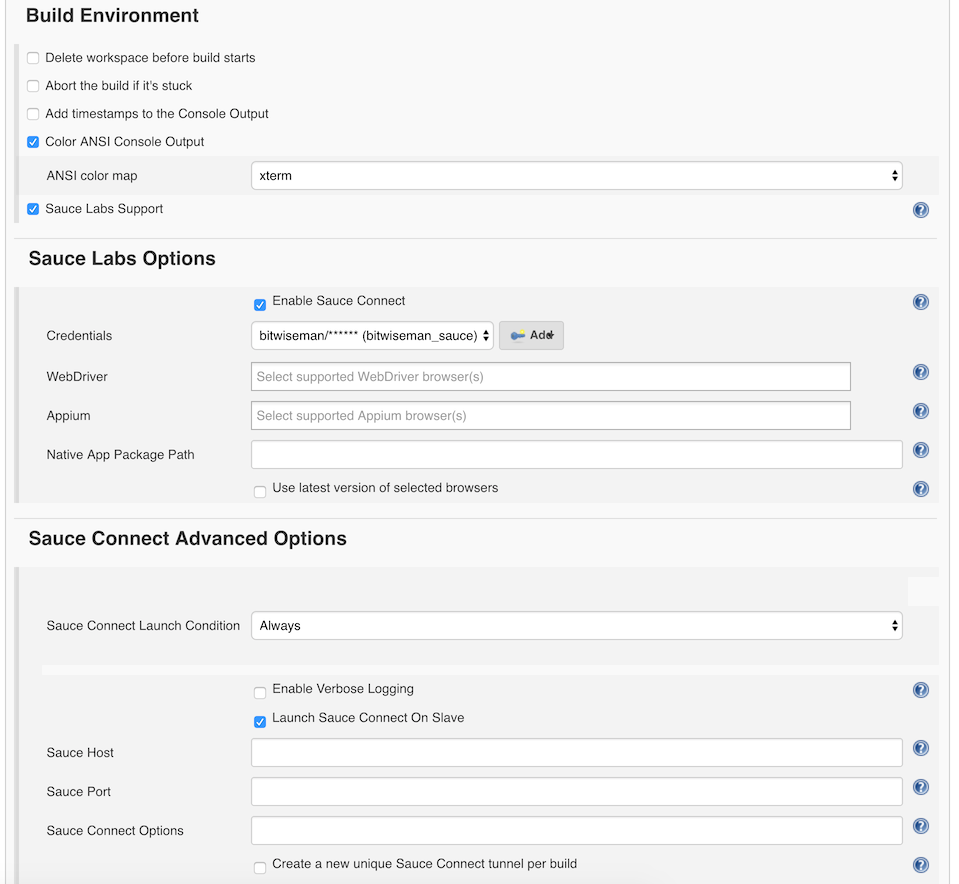 I started off by following Sauce Labs' instructions on "Setting up Sauce Labs with Jenkins" as far as I could. I installed the JUnit and Sauce OnDemand plugins, created an account with Sauce Labs, and added my Sauce Labs credentials to Jenkins. From there I started to get a little lost. I’m new to Selenium and I had trouble understanding how to translate the instructions to my situation. I needed a working example that I could play with.