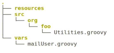 To understand how to use shared libraries in Pipeline, we first need to understand how they are constructed. A shared library for Jenkins consists of a source code repository with a structure like the one below: