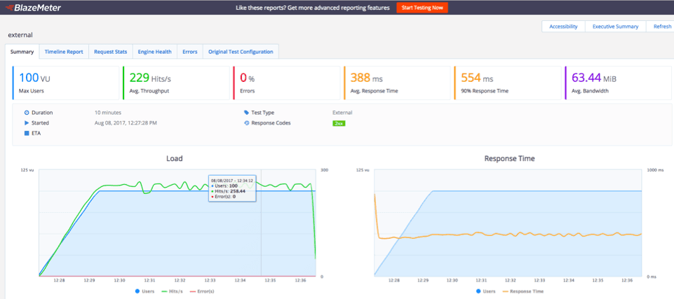 If you want to conduct an in-depth analysis of your test results, run your tests on BlazeMeter. You will be able to monitor KPIs through advanced and colorful reports, evaluate system health over time, and run your tests from multiple geo-locations.