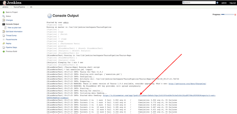 In the Console Output you can see the test results and also the link to the report in BlazeMeter.