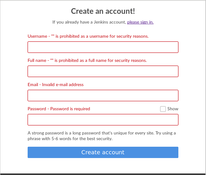 This blog post gives an introduction to the new design for the login and signup forms and Jenkins is (re)starting pages introduced in Jenkins 2.128. The first part of the blog post is an introduction to the new design and UX for Jenkins users. The later part is talking about extensibility in a more technical manner, aimed at plugin developers.