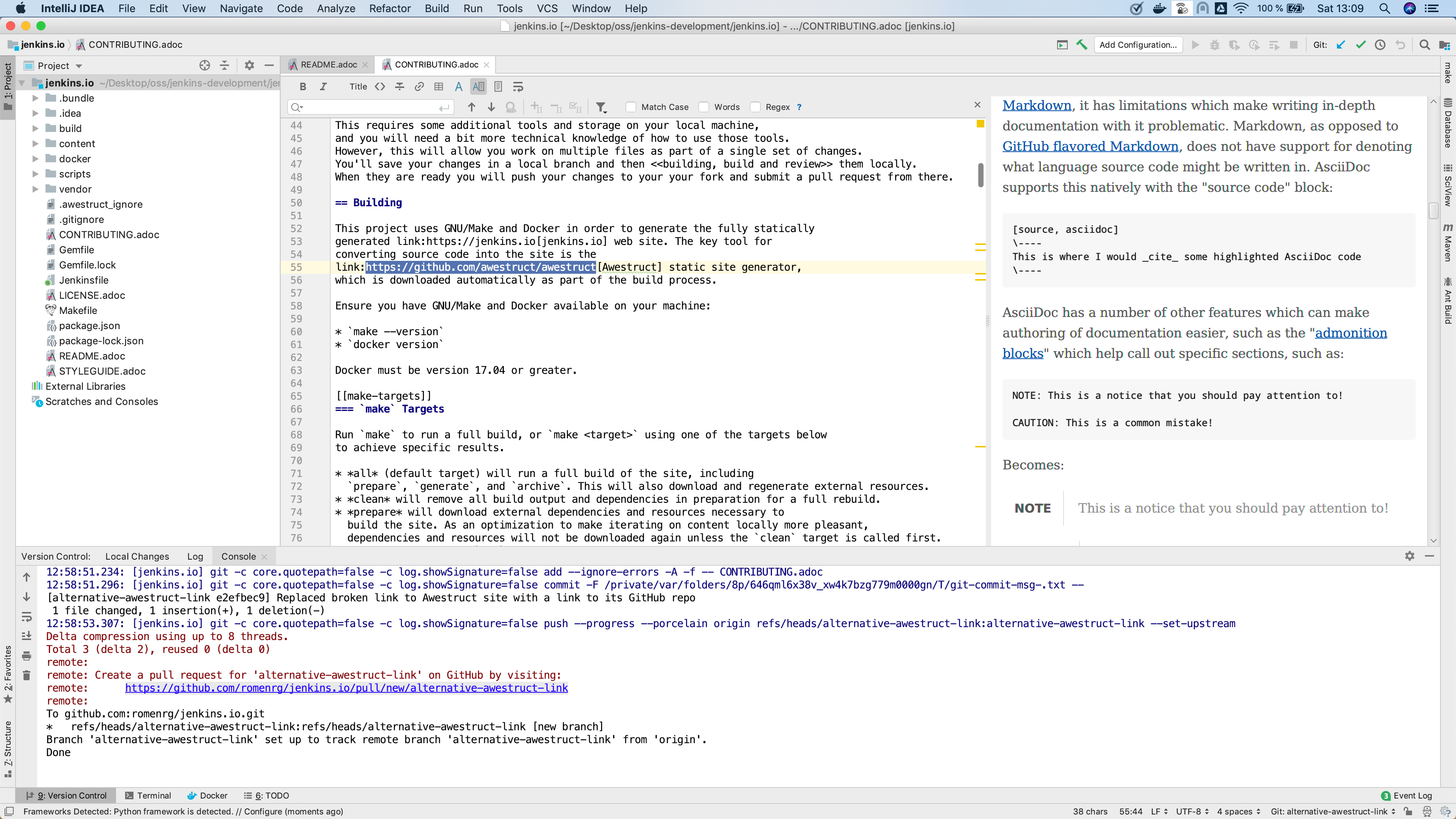 When reading the contributing file, I learned about the Awestruct static site generator, which is the tool used to transform the AsciiDoc source files in the repo into a website. However, when I clicked the link to learn more about it, I noticed it was broken. The domain had expired.