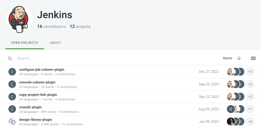 Thanks to Alexander Brandes for helping get CrowdIn connected with Jenkins. This will make the plugin localization process easier, allowing for any user to contribute to localizing plugin documentation. This page shows the plugins that have localization work currently open. It also provides some insight as to how many changes have been made and how many people have been contributing to the project.