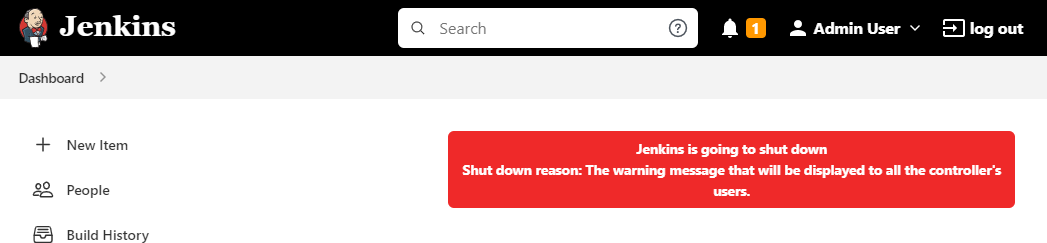 Prevents new builds from starting so that the system can be shut down safely. Displays a red banner with a custom message so that users know what is about to happen.