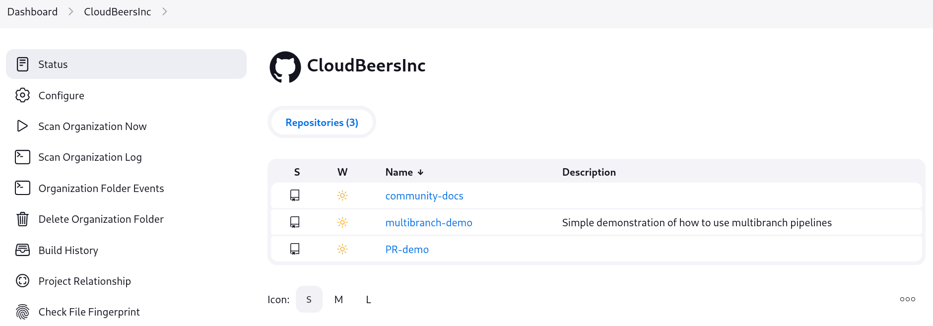 To demonstrate using an Organization Folder to manage repositories, we’ll use the fictitious organization: CloudBeers, Inc..