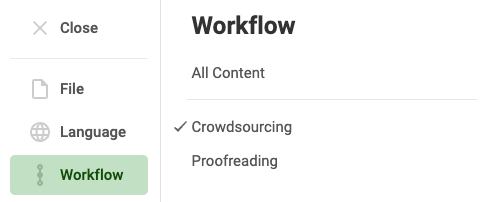 A click on "Crowdsourcing" opens a sidebar on the left, where you can switch between "Crowdsourcing" and "Proofreading".