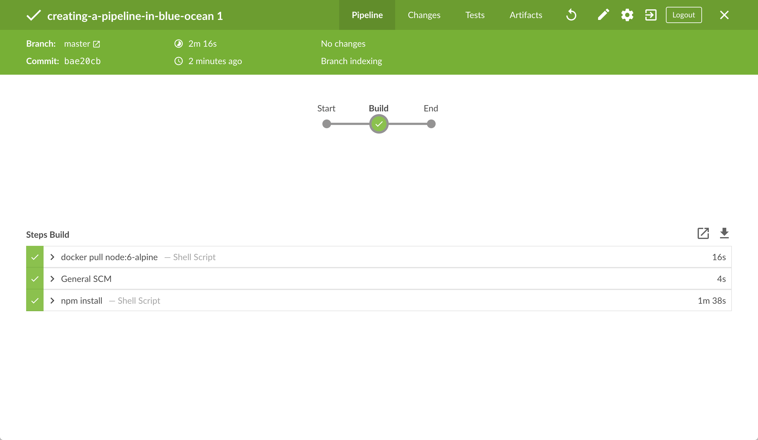 Well done! You’ve used the Blue Ocean feature of Jenkins to build a simple Node.js and React application with npm.
