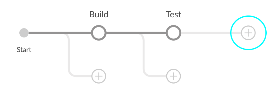 In the main Pipeline editor, select the + icon to the right of the Build stage you created above to open the new stage panel on the right.