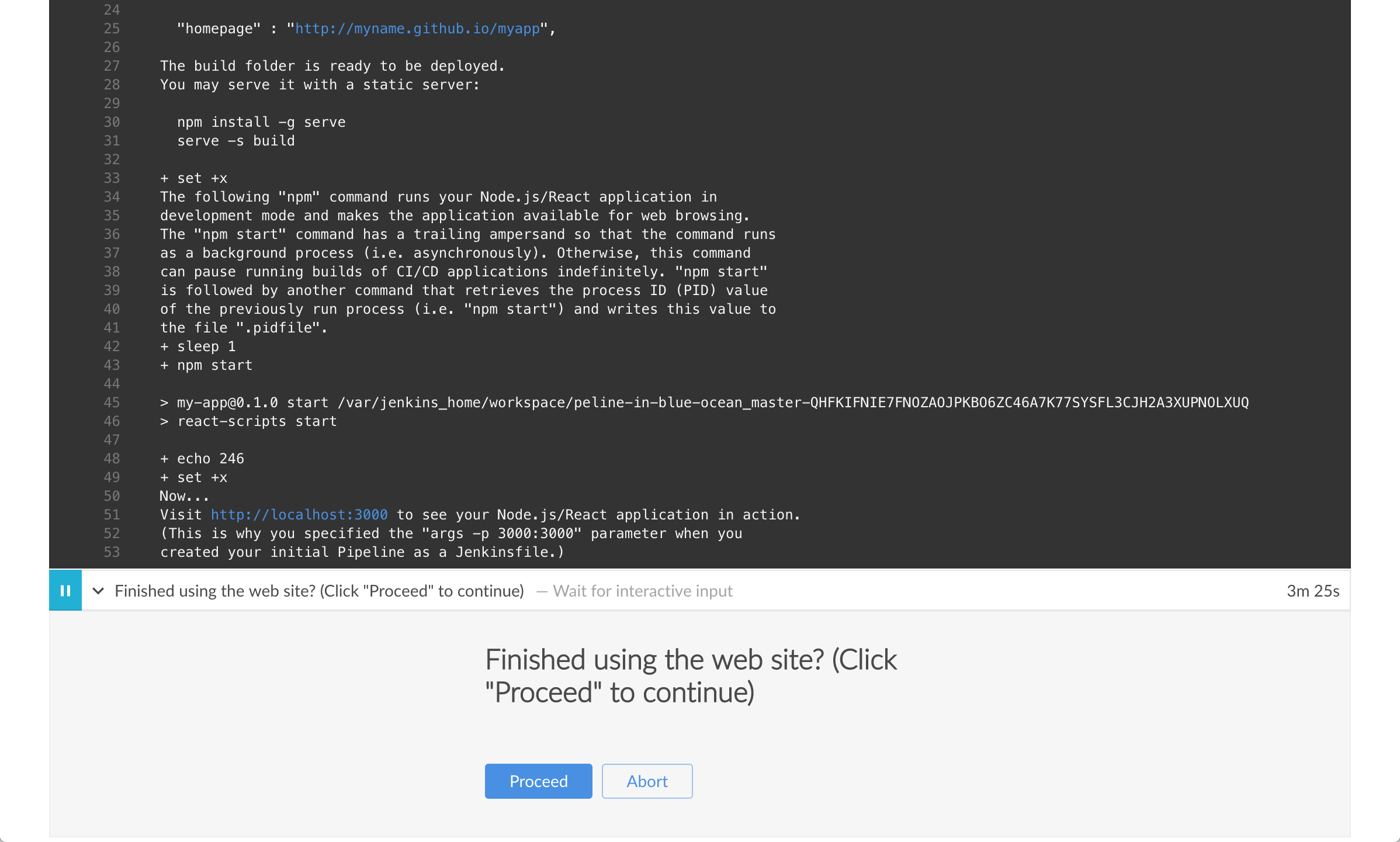When you are finished viewing the page/site, select Proceed to complete the Pipeline’s execution.
