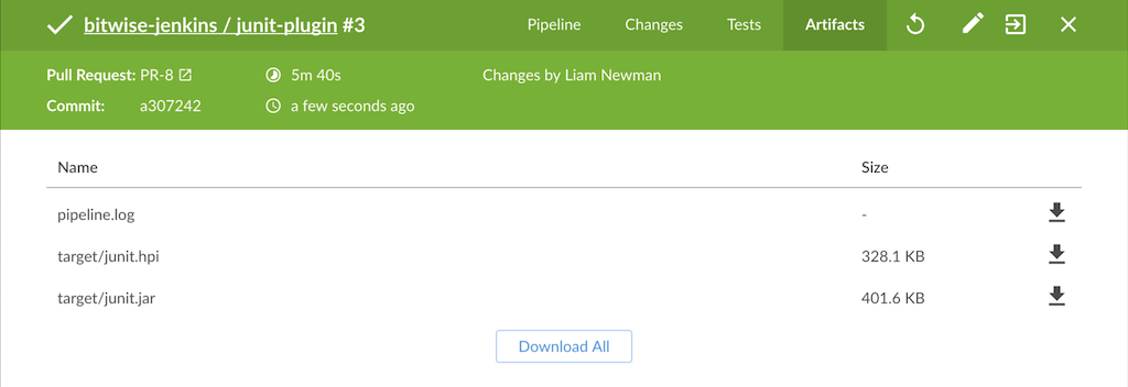 Blue Ocean 流水线运行细节视图显示了与单个流水线运行相关的信息并允许以后编辑或回放运行。 下面是运行细节视图部分的详细概述。