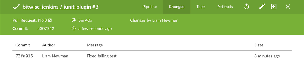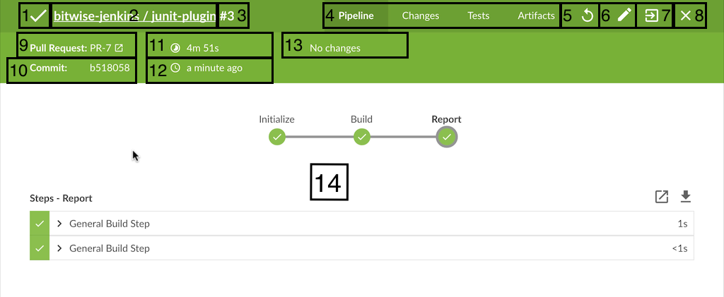 Run Status - 此图标, 以及顶部菜单栏的背景色,表明了流水线运行的状态。
